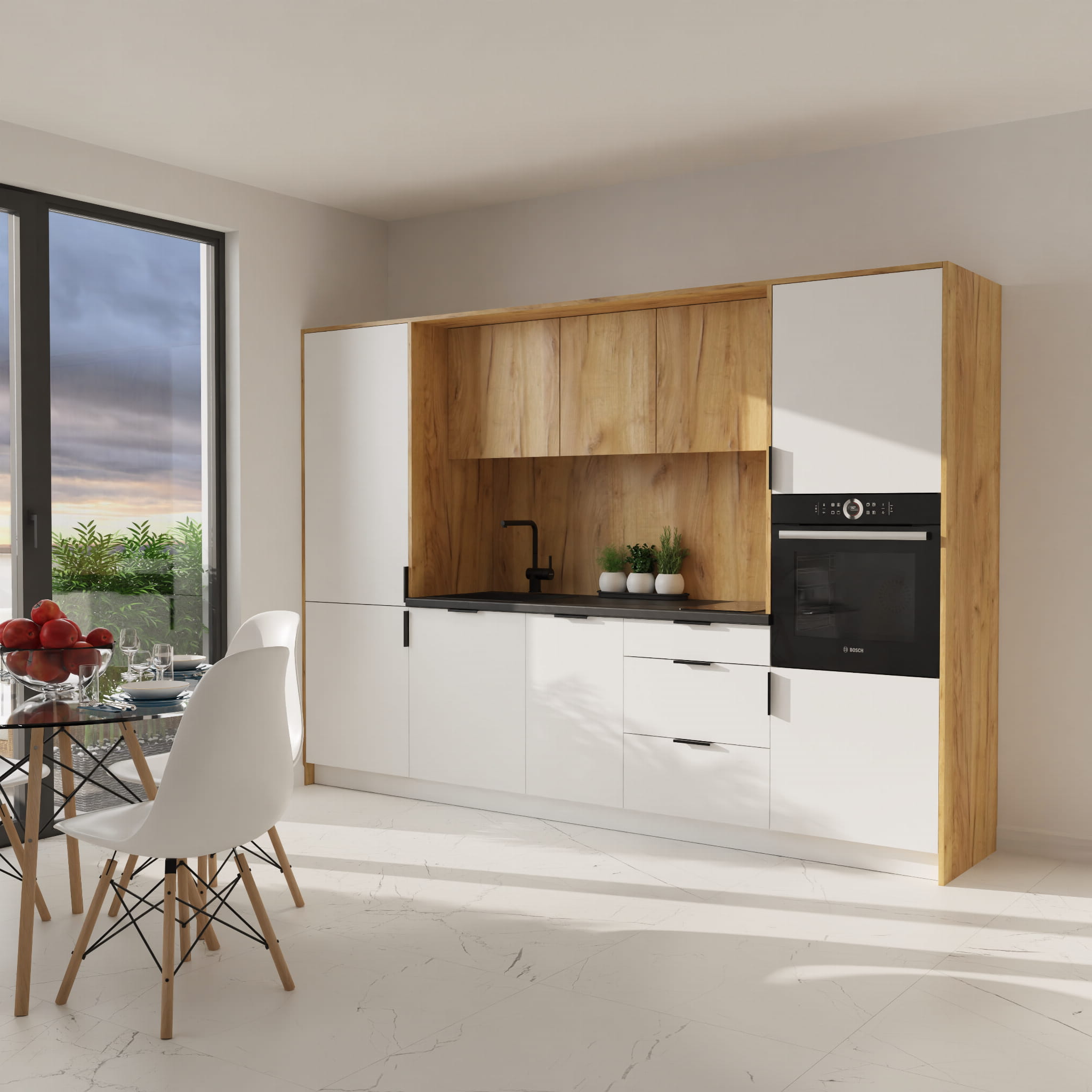 Nasza kuchnia gotowa do montażu to idealne rozwiązanie, które łączy wygodę i nowoczesny design. Dostępna w trzech wariantach: S, M i L, zapewnia dopasowanie do każdej przestrzeni. Kuchnia złożona przychodzi w formie gotowych mebli, co oszczędza Twój czas i energię.