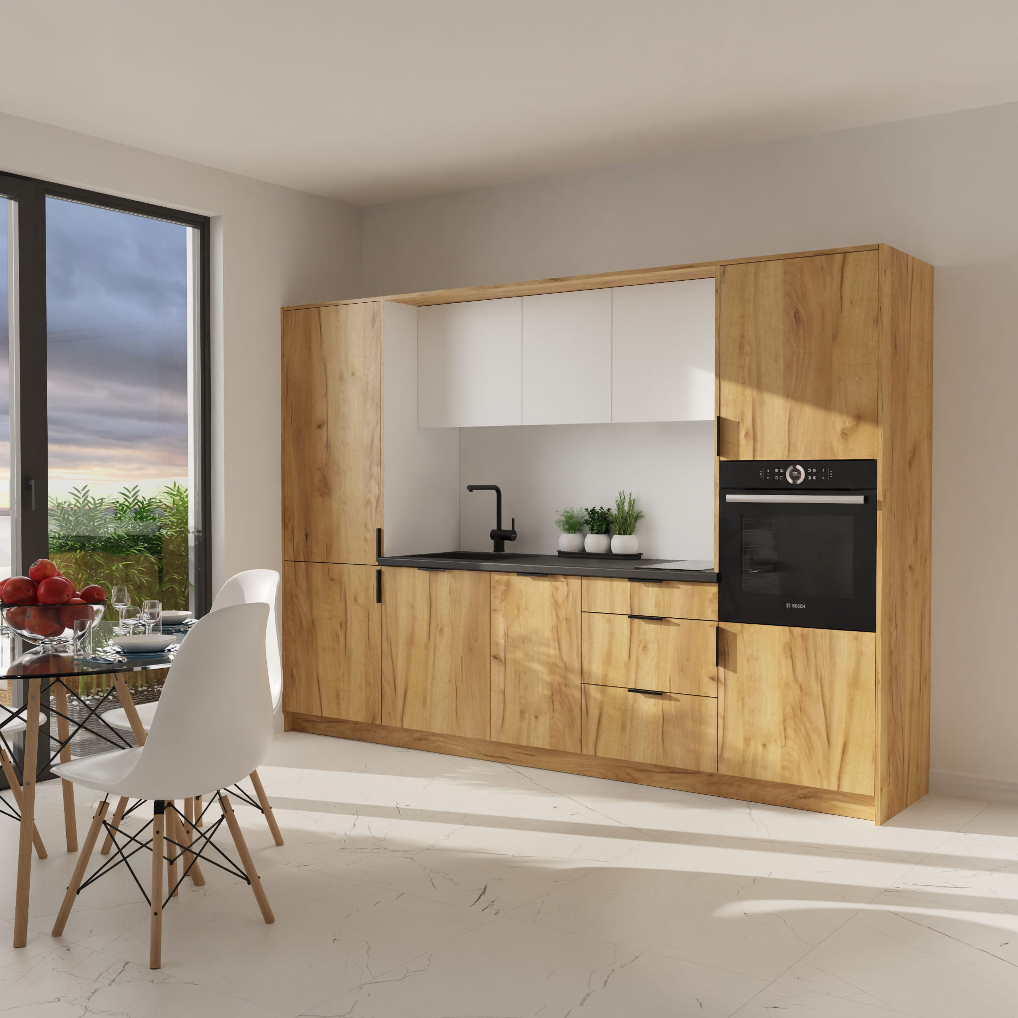 Duża kuchnia gotowa do montażu - Dąb Craft złoty + Biały