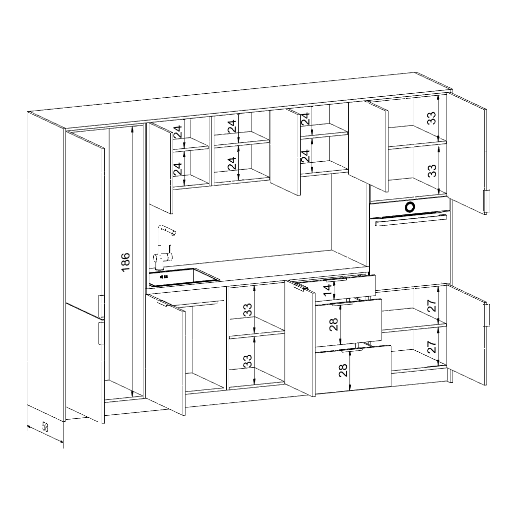 Kuchnia S : szer. 168,6cm Wys. 218cm