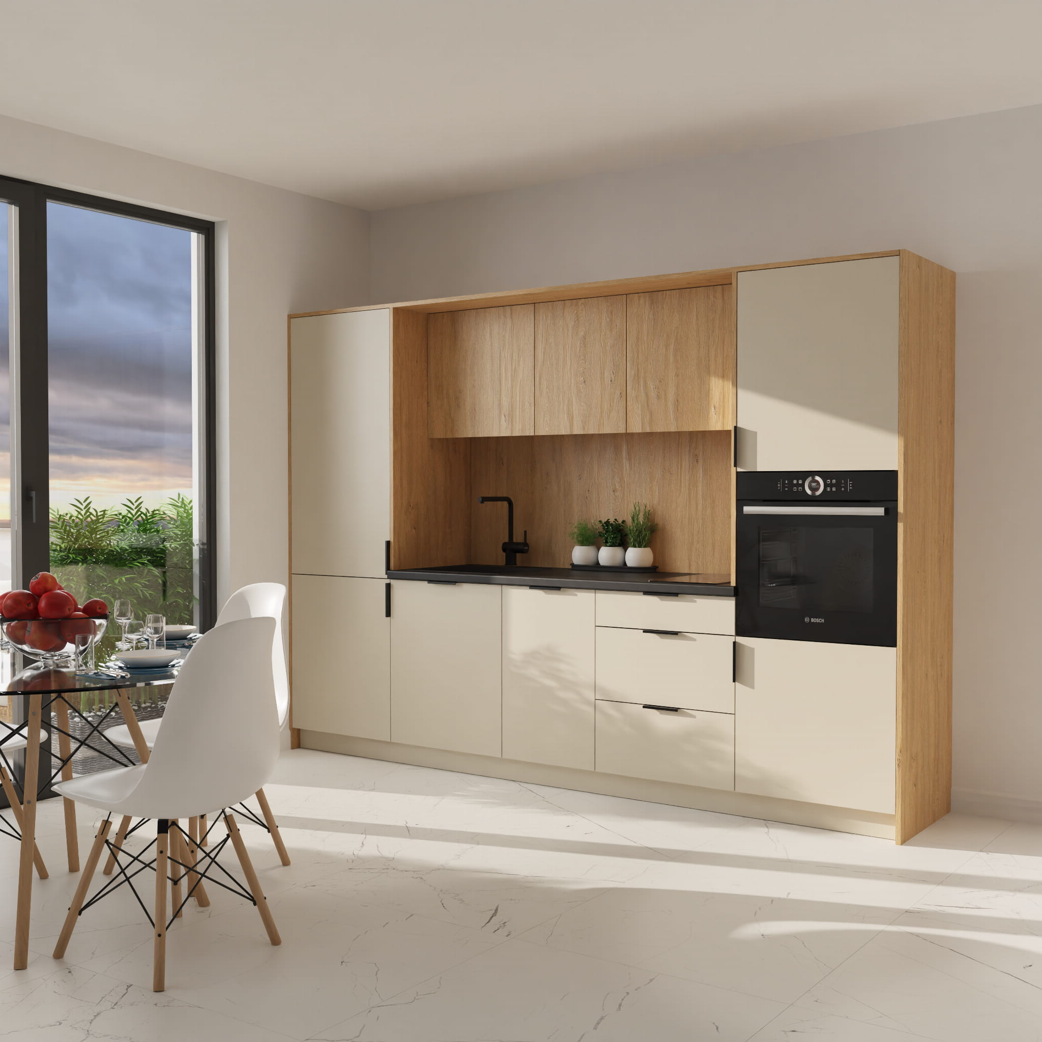 Duża kuchnia gotowa do montażu - Szampański + Dąb Kamienny