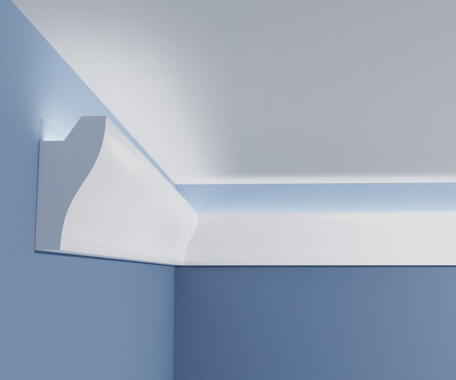 Gzyms oświetleniowy ścienny wysoki to listwa dekoracyjna, która przyklejana jest do ściany w małej odległości od sufitu. Montowana w celach praktycznych, takich jak np. niewielka, optyczna zmiana wielkości pomieszczenia, a także w celu zamaskowania niedoskonałości. Odpowiednio dobrane źródło światła (jarzeniówki, ledy) daje niesamowity efekt.