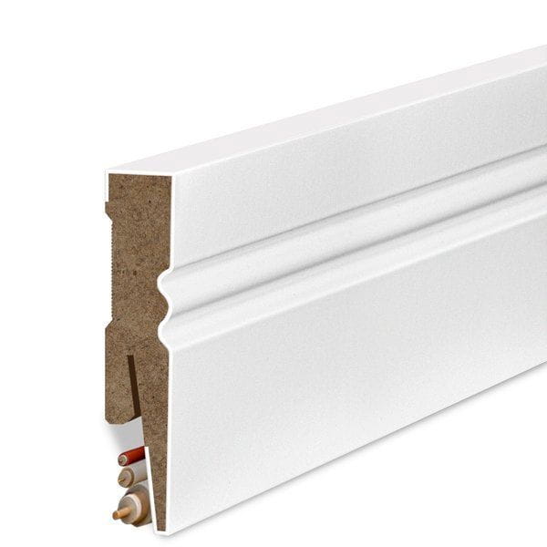 Listwy wykonane z MDF zabezpieczone wodoodporną okleiną. Specjalna powłoka ma dużą odporność na zabrudzenia, uszkodzenia mechaniczne i promienie UV powodujące żółknięcie okleiny.