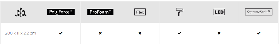 Model tej listwy przypodłogowej wykonany jest z materiału PolyForce. Tworzywo PolyForce jest twardszą i bardziej wytrzymałą wersją polimeru. Cechuje się największą odpornością na uszkodzenia mechaniczne. Wszystkie listwy przypodłogowe są wodoodporne, dzięki czemu mogą być stosowane w łazienkach i kuchniach.