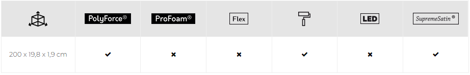 Model tej listwy przypodłogowej wykonany jest z materiału PolyForce. Tworzywo PolyForce jest twardszą i bardziej wytrzymałą wersją polimeru. Cechuje się największą odpornością na uszkodzenia mechaniczne. Wszystkie listwy przypodłogowe są wodoodporne, dzięki czemu mogą być stosowane w łazienkach i kuchniach.