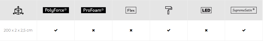 Model tej listwy przypodłogowej wykonany jest z materiału PolyForce. Tworzywo PolyForce jest twardszą i bardziej wytrzymałą wersją polimeru. Cechuje się największą odpornością na uszkodzenia mechaniczne. Wszystkie listwy przypodłogowe są wodoodporne, dzięki czemu mogą być stosowane w łazienkach i kuchniach.