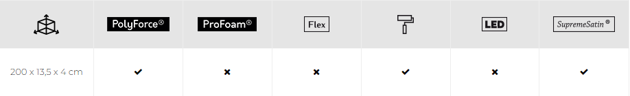 Model tej listwy przypodłogowej wykonany jest z materiału PolyForce. Tworzywo PolyForce jest twardszą i bardziej wytrzymałą wersją polimeru. Cechuje się największą odpornością na uszkodzenia mechaniczne. Wszystkie listwy przypodłogowe są wodoodporne, dzięki czemu mogą być stosowane w łazienkach i kuchniach.