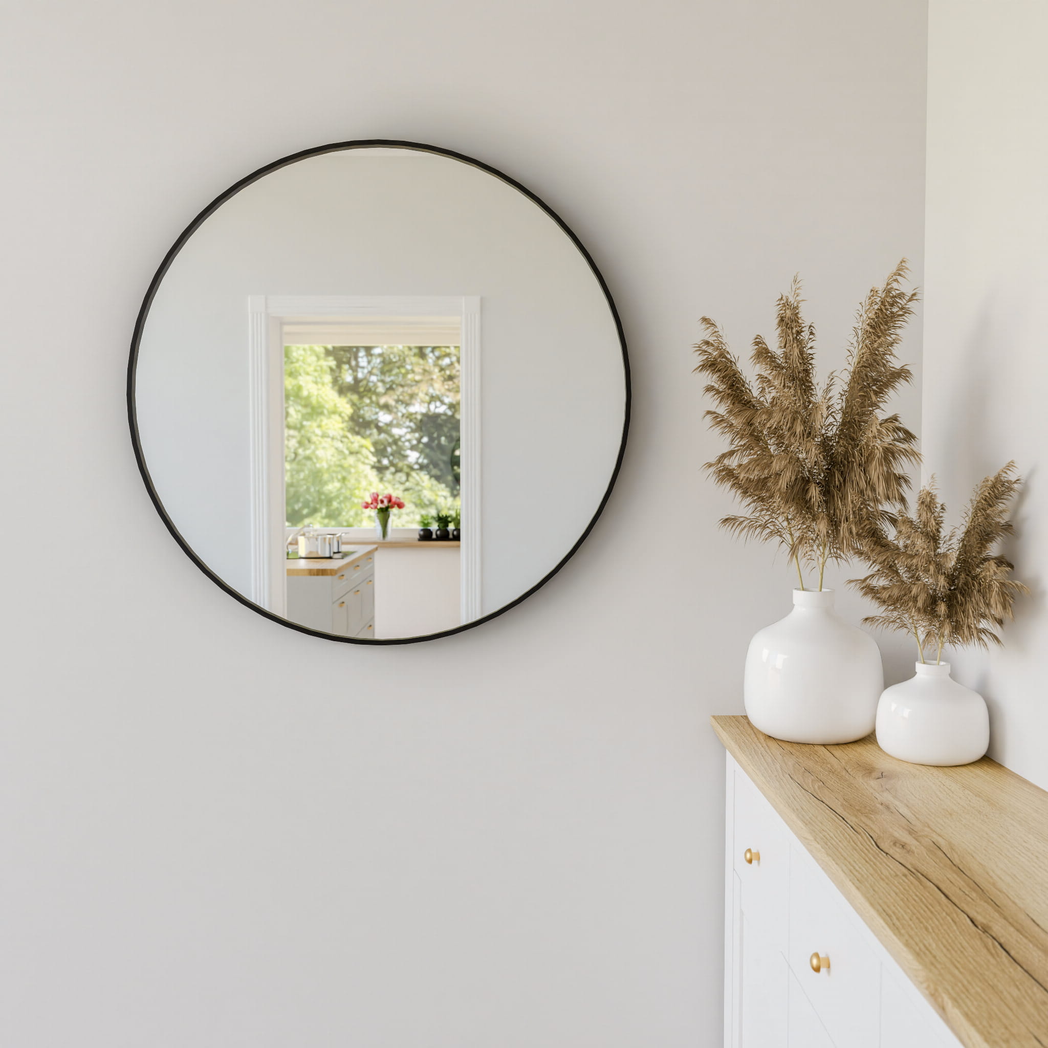 - Kolejnym atutem tego lustra jest jego niezwykle elegancki sposób montażu. Po powieszeniu lustra na ścianie kołki mocujące są niewidoczne, co nadaje mu jeszcze bardziej nowoczesny wygląd. Dzięki temu lustro wydaje się niemal "wyswobodzone" od wszelkich elementów montażowych, co dodaje mu lekkości i subtelnego uroku.