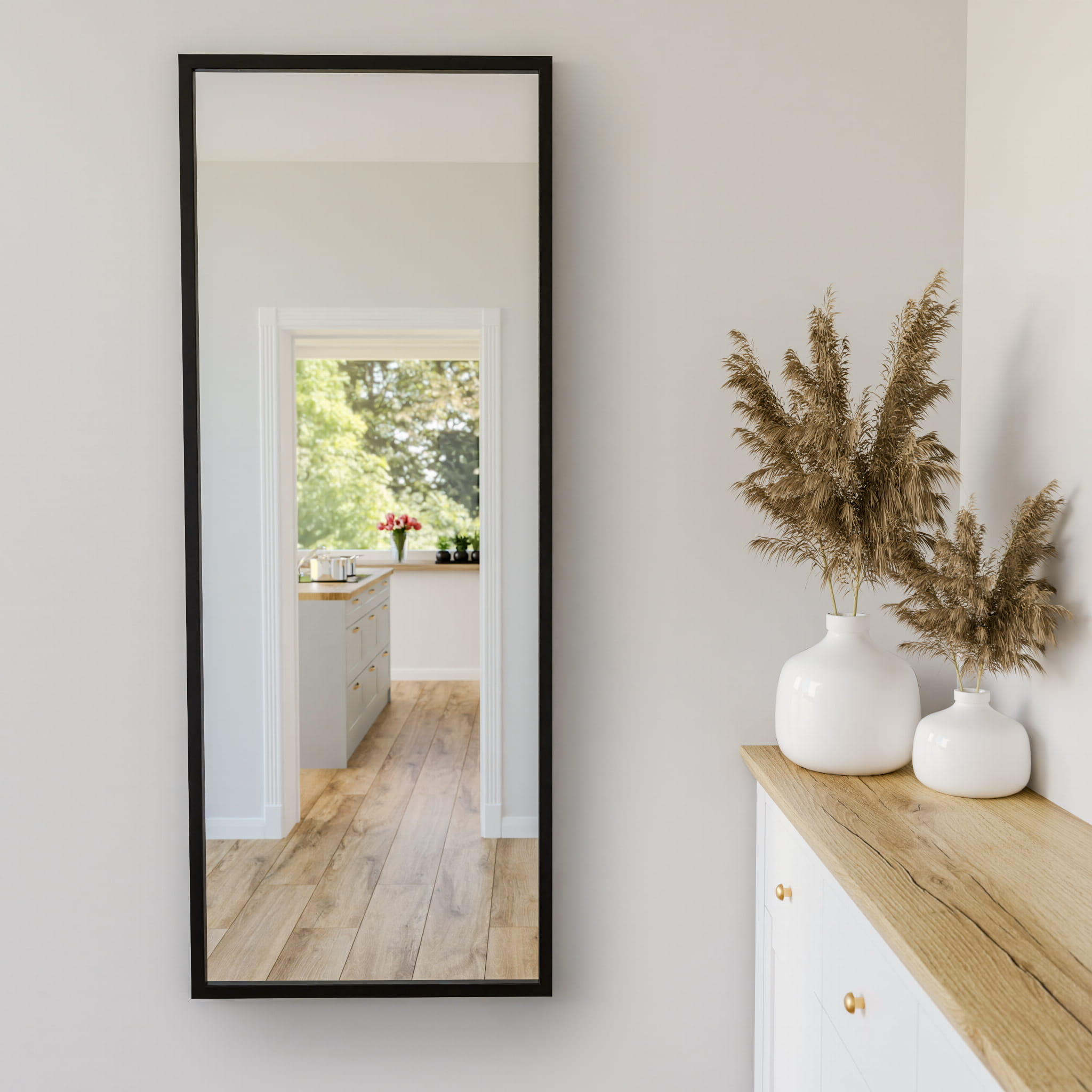 • Szczegóły konstrukcyjne ramy są niezwykle ważne. Dlatego zadbaliśmy o każdy aspekt: rama lustra została starannie sklejona, z naciskiem na estetykę, przez co nie ma widocznych zszyć. Jej wymiary to szerokość 2,6 cm i grubość 2,2 cm, co dodaje elegancji i charakteru całej kompozycji.