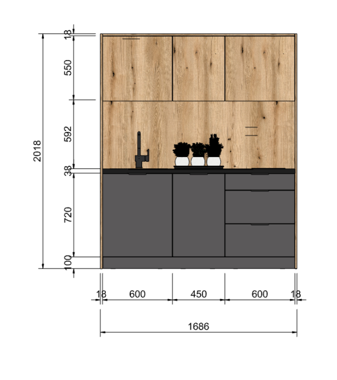 Kuchnia S : szer. 168,6cm Wys. 218cm