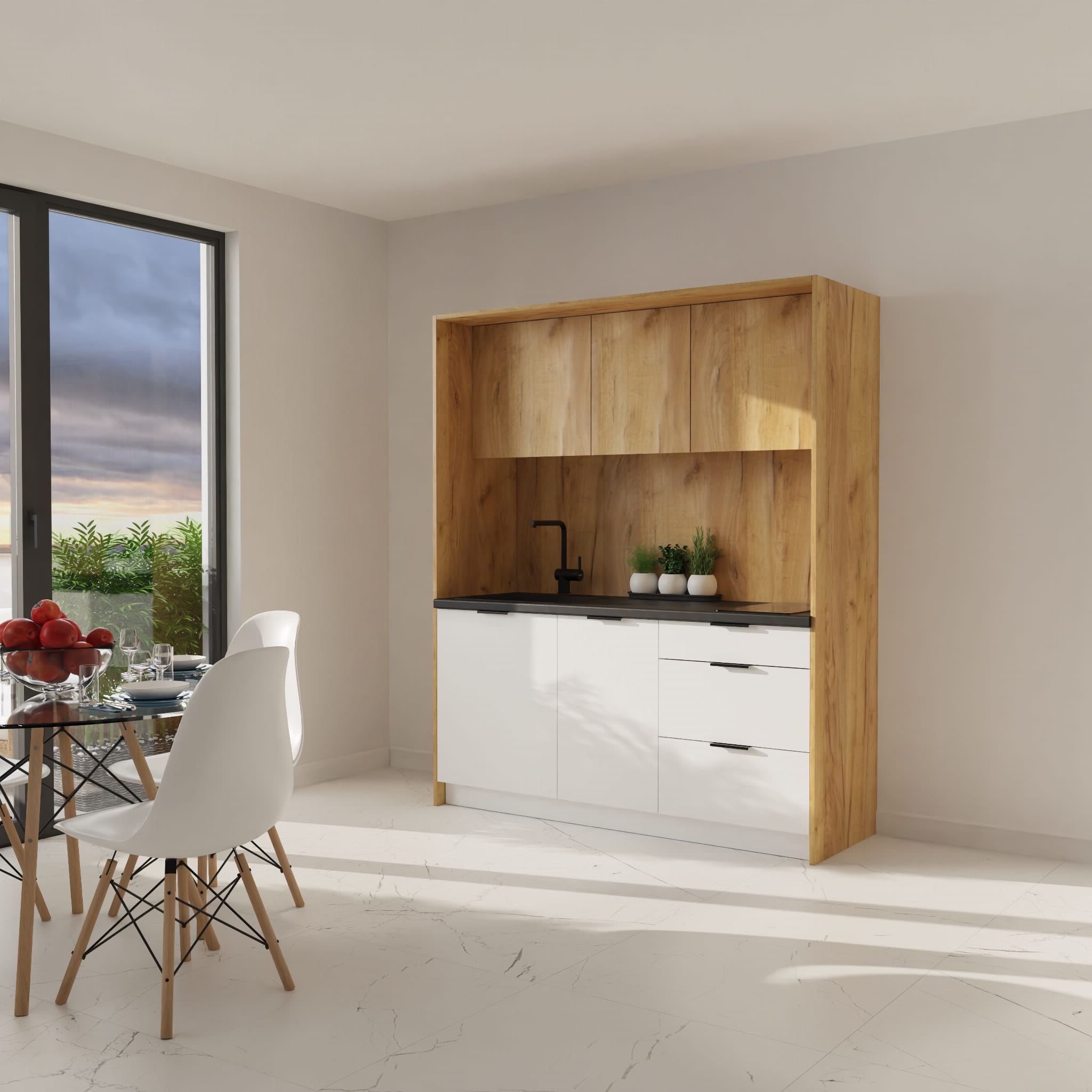 Mała kuchnia gotowa do montażu - Dąb Craft złoty + Biały