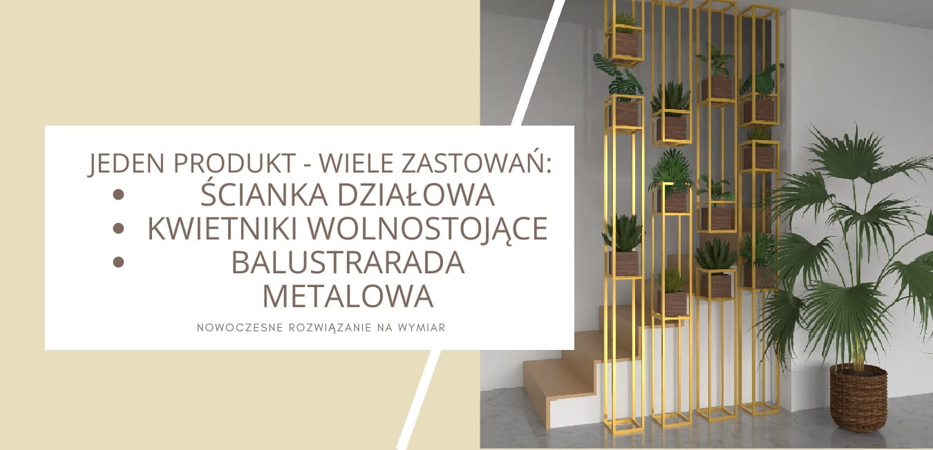 Ścianka działowa metalowa w formie kwietników modułowych - Seria Inspiracja Gold
