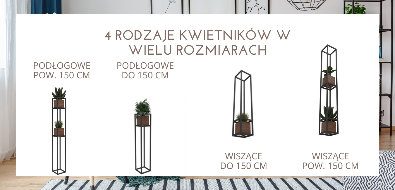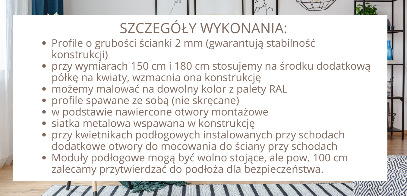Kwietniki wykonane z profili o wymiarach 20/20 mm i grubości ścianki 2 mm.