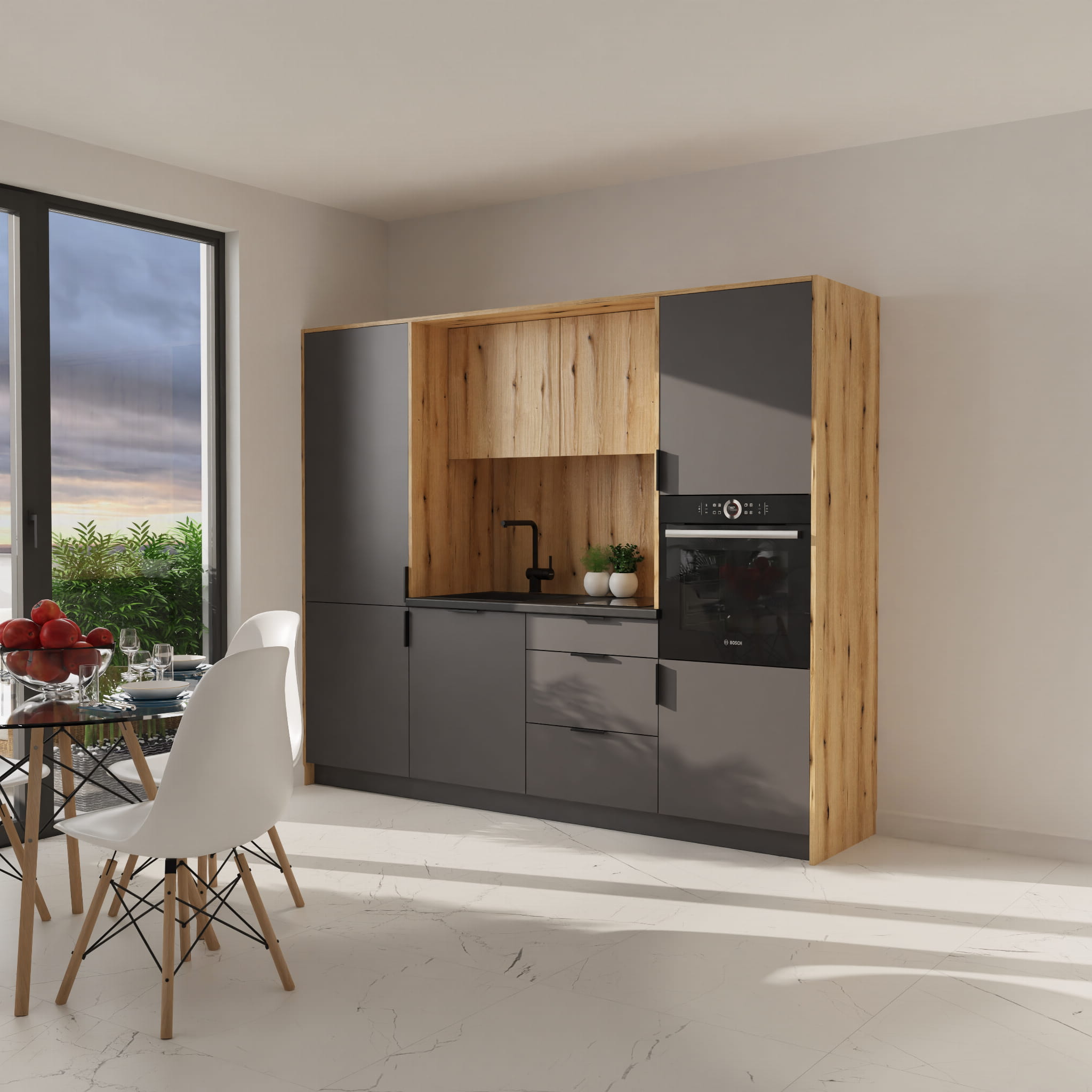Średnia kuchnia gotowa do montażu - Grafit szary + Dąb Evoke przybrzeżny